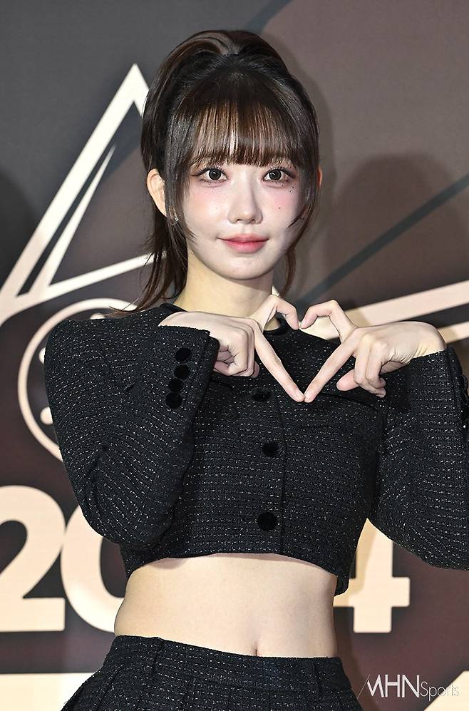 그룹 QWER 마젠타가 16일 오후 인천 중구 한 공연장에서 진행된 '코리아 그랜드 뮤직 어워즈'(KGMA)에서 포토타임을 갖고 있다.