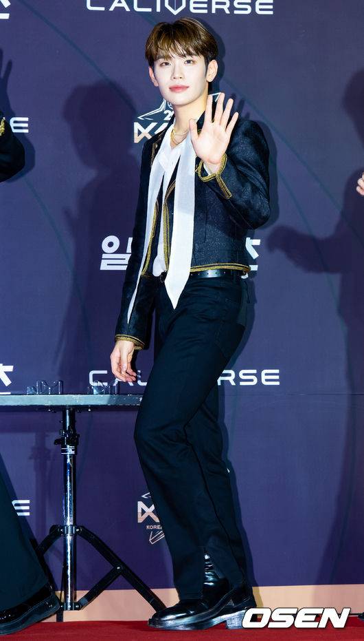 제로베이스원 김태래가 입장하며 포즈를 취하고 있다.