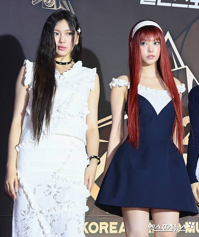 이날 레드카펫 행사에 참석한 뉴진스 혜인, 해린이 포토타임을 갖고 있다.