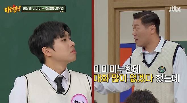 미미미누는 이장원, 허성범을 가리키며 "여기 두 명은 수능을 보지 않았다. 수능 특집인데"라고 열을 올렸다.