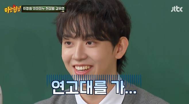 이상민은 "영재고 학교 출신은 100% 대학 가는 거냐"라고 물었다. 이에 허성범은 머뭇거리다 "논란이 될 수도 있는데, 우린 성적 좀 안 좋은 친구들이 연고대를 가"라고 말했다. 이에 연대 출신 서장훈은 벌떡 일어나 "나와"라고 분노했고, 고대 출신 미미미누는 "그 와중에 연고대면 고대는 꼴찌가 간다는 거 아니냐"고 속사포로 말했다. 이수근은 "그럼 미미미누는 그런 곳을 5번 도전한 거냐"라고 말하기도.