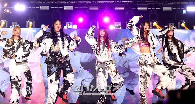 뉴진스가 16일 인천 중구 운서동 인스파이어 아레나에서 열린 '2024 코리아그랜드뮤직어워즈(KGMA)' 첫째날 아티스트데이에서 베스트 아티스트상을 수상하고 멋진 축하무대를 꾸미고 있다.