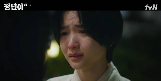 16일 tvN ‘정년이’에선 결혼을 위해 국극단을 떠나는 주란(우다비 분)과 그와 이별하며 눈물을 흘리는 정년(김태리 분)의 모습이 그려졌다.