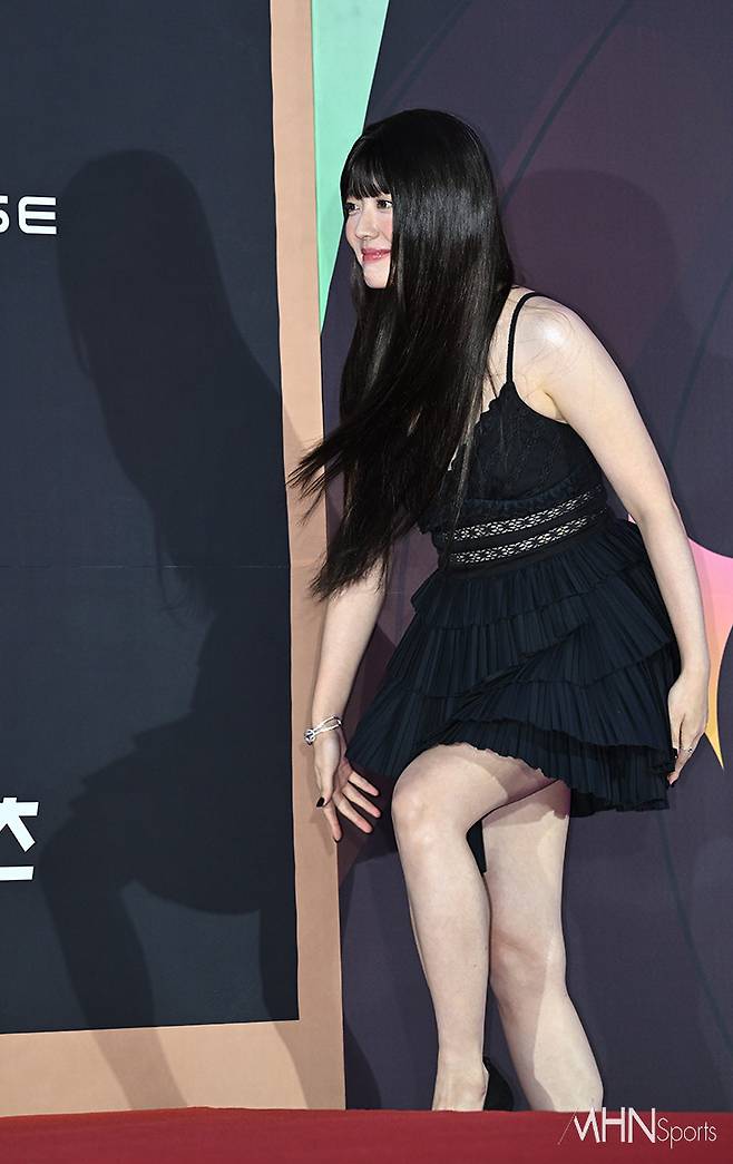 이날 남지현은 레이스가 포인트 된 올블랙 미니 드레스에 힐을 매치한 섹시 시크 룩을 선보였다.
