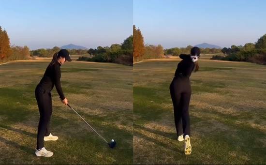 공개된 영상 속에서 재아는 필드에 나가 골프를 치고 있다.