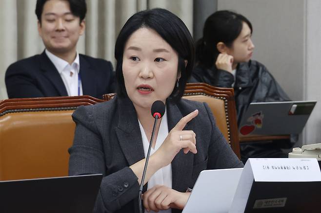 | ▲ 이소영 더불어민주당(의왕시과천시) 의원이 1일 오전 서울 여의도 국회에서 열린 운영위원회의 대통령비서실, 국가안보실, 대통령경호처에 대한 국정감사에서 윤석열 대통령과 명태균씨의 통화 녹취와 카카오톡 대화 내용을 공개하며 정진석 대통령비서실장에게 질의하고 있다. |