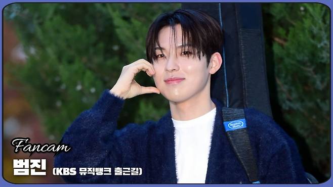 HK직캠|범진, 기타 메고 멋지게 등장… '부드러운 미소~' (뮤직뱅크 출근길)