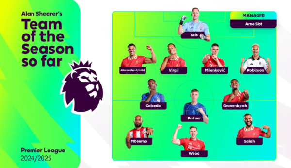 앨런 시어러가 선정한 이번 시즌 잉글랜드 프리미어리그(PL) 베스트 11이 공개됐다.