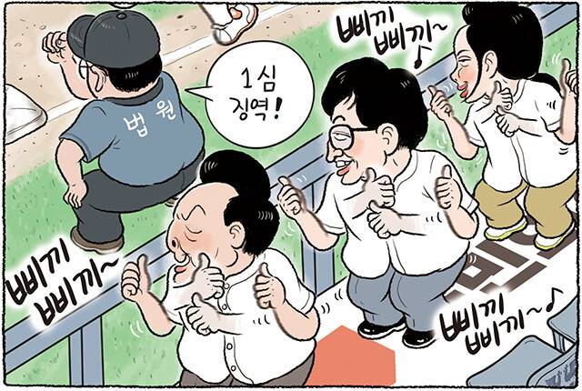 이재명 유죄 뒤에선, 그들만의 ‘삐끼삐끼 춤’ [한겨레 그림판]