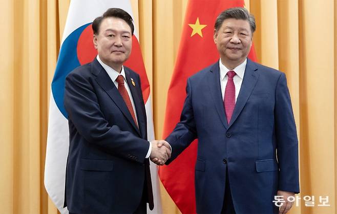 이날 회담에서 윤 대통령은 북한과 러시아 간 군사협력을 겨냥해 “중국이 건설적으로 역할을 해 달라”고도 했다. 다만 시 주석은 “당사자들이 대화와 협상을 통해 문제를 평화적으로 해결해 나가기를 희망한다”고 답했다.