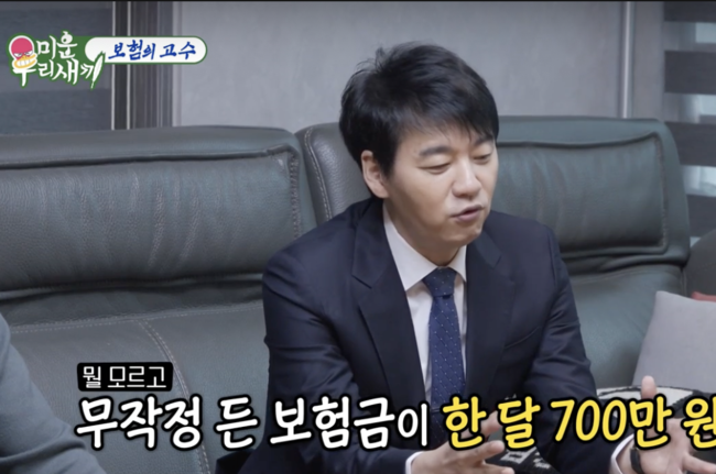 특히 월 보험료 600만원 납입 중인 김정민을 본 김승수는 “김정민보다 더 심했다”며 “한 달에 700만원까지 낸 적 있다”며 폭탄고백해 모두를 깜짝 놀라게 했다. 무작정 뭘 모르고 든 보험이 700만원이었다고. 2003년이었다고 해, 지금으로 환산하면 천4백~천5백만원 되는 것이었다. 이를 본 서장훈은 “주변 잘 챙기니 보험들어달라는 것 거절 못했을 것”이라 추측했다