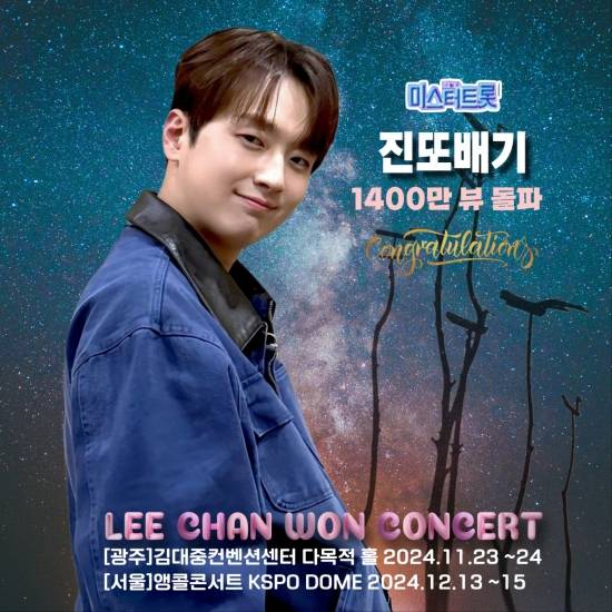 (엑스포츠뉴스 이정범 기자) 이찬원의 '진또배기' 무대영상이 유튜브 조회수 1,400만 뷰를 넘어섰다.