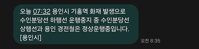 불은 오전 7시55분께 꺼졌지만 수인분당선 하행선 열차가 무정차하고 있다. 상행선과 용인경전철은 정상운행 중이다.