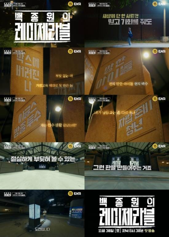 30일 ENA ‘백종원의 레미제라블’이 첫 방송된다. ‘백종원의 레미제라블’은 짧지만 강렬한 서사를 담은 20인 도전자들이 처음이자 마지막으로 찾아온 인생역전의 기회를 잡기 위해 혹독한 스파르타식 미션을 수행하며 이를 극복하는 대서사와 진정성이 담긴 성장 예능이다. 강렬한 캐릭터, 인생역전 서사, 가슴 따뜻한 휴먼 다큐의 묘미를 동시에 담아낸 특별한 리얼리티를 예고한다.