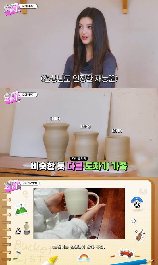 앞서 지난달 31일 뉴진스 공식 유튜브 채널에는 '민지's 버킷리스트: 내가 만든 도자기 너를 위해 구웠지'라는 제목의 자체 콘텐츠 '진스진'(Jeans'ZINE) 영상이 게재됐다.