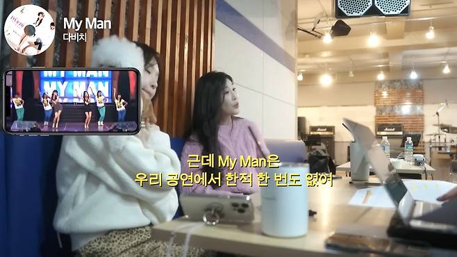 다음으로는 이해리가 다비치의 'My Man'을 언급하며 "근데 'My Man'은 우리 공연에서 한 번도 한 적 없다"라고 얘기해 눈길을 끌었다. 강민경은 "한창 1등 될락 말락 할 때 소속사(김광수) 사장님이 활동 그만하라고 했다. 사장님 미워핑"이라고 외쳤다. 이에 이해리도 옆에서 "'여성시대' 하라고 했다"라고 거들었다.