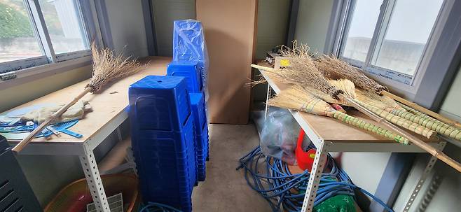 | ▲ 전북 무주의 한 공동수집장 내부. 빗자루, 간이의자 등이 놓여 있다. |