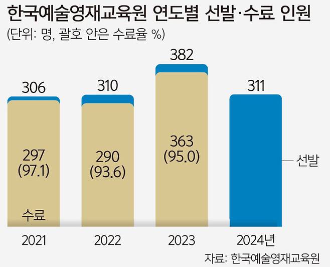 올해 선발인원은 서울 본원 203명과 세종(40명)·통영(30명)·광주(38명) 캠퍼스 합쳐 모두 311명이다.