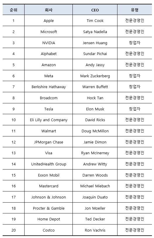 | ▲ 미국 20대 기업 CEO |