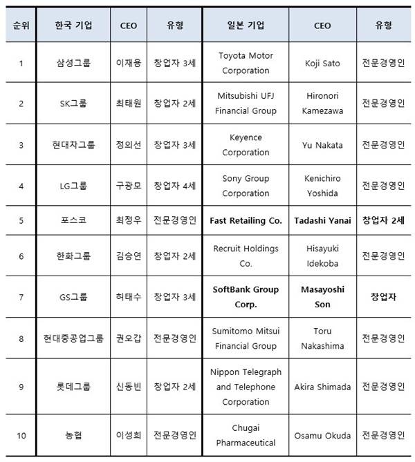 | ▲ 한일 10대기업 CEO |