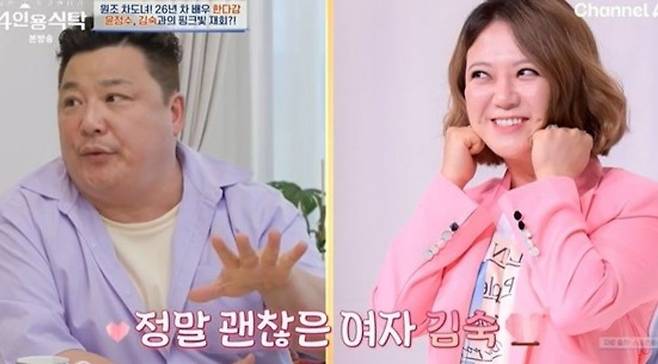 [TV리포트=박정수 기자] 코미디언 윤정수가 과거 가상 부부로 호흡을 맞췄던 김숙을 언급했다. 지난 18일 방송된 채널A '절친 토큐멘터리-4인용 식탁'에는 김가연이 윤정수, 배우 한다감, 이해영을 초대해 이야기를 나누는 모습이 공개됐다.