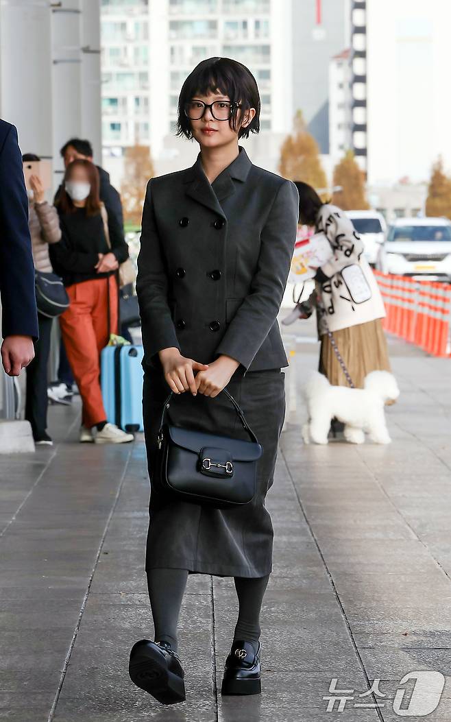 (서울=뉴스1) 김진환 기자 = 구찌 글로벌 앰버서더인 뉴진스(NewJeans) 하니가 뷰티 행사 참석 차 19일 오후 서울 강서구 김포공항 국제선을 통해 일본 도쿄로 출국하고 있다. 2024.11.19/뉴스1