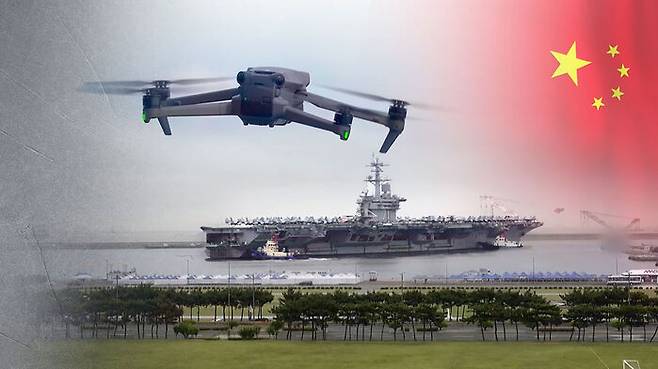 중국인 유학생 3명이 지난 6월 25일, 부산 해군작전사령부 작전기지에 정박해 있는 미국 항공모함 시어도어 루즈벨트호를 드론으로 불법 촬영하다 적발됐습니다. 루즈벨트호는 한미일 3국 최초로 수상·공중·수중·사이버 등 분야에서 치러지는 다영역 군사훈련 '프리덤 에지'에 참가하기 위해 사흘 전에 입항한 것이었습니다. 윤석열 대통령도 이날 루즈벨트호에 승선해 "우리 동맹은 그 어느 때보다 굳건하다"며 한미 동맹을 강조했습니다. 신원식 국방부 장관, 장호진 당시 국가안보실장과 미8군 사령관 등 한미 안보 핵심 인사들이 대거 참석한 행사였습니다.