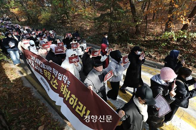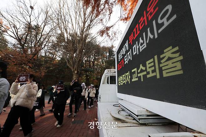 “성범죄자 수업 듣기 싫다”가 명예 훼손? 서울여대 규탄 시위 [현장 화보]