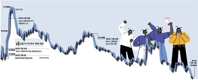 한편 DB하이텍 소액주주연대는 KCGI·DB그룹이 처음부터 공모관계였고, 경영권 참여선언으로 주가가 급등하기 직전에 차명으로 주식을 매입한 의혹이 있다며 금융감독원에 조사를 요구했다.