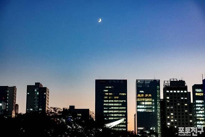 자연과 인공의 불빛이 공존하는 시간입니다.