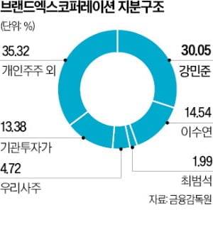 이런 과정에서 최대주주인 강씨가 경영권을 포함해 지분을 내놨다는 보도가 나왔다. 이후 브랜드엑스코퍼레이션의 주가는 8350원에서 지난 19일 종가 기준 6500원으로 21% 하락했다. 이수연 대표는 이에 대해 “주가 하락은 대주주의 매각 소문에 대한 불확실성으로 일시적인 것”이라며 “대주주가 매각을 하든 안하든 경영권 포함 회사를 지키고 목표대로 젝시믹스를 성장해 낼 것”이라고 했다.