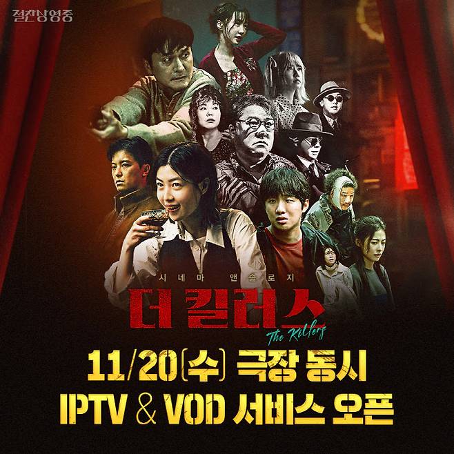 ‘더 킬러스’는 헤밍웨이 단편소설 ‘더 킬러스’를 대한민국 대표 감독 4인이 각기 다른 시선으로 해석하고 탄생시킨 4편의 살인극을 담은 시네마 앤솔로지 작품이다. 새롭고 신선한 기획과 시도로 관객과 평단의 호평을 불러 모았던 ‘더 킬러스’가 20일 오늘부터 극장 동시 IPTV & VOD 서비스를 개시한다. 극장을 비롯해 IPTV(KT, SKB, U+), 홈초이스, KT스카이라이프, 구글플레이, 쿠팡플레이, 네이버 시리즈온, 웨이브, 웹하드 등 다양한 플랫폼을 통해 ‘더 킬러스’를 만나 볼 수 있다. 스크린을 통해 N차 관람을 이어온 관객부터 아쉽게 극장에서 영화를 접할 수 없었던 관객들까지 이젠 편안히 영화를 즐길 수 있다.