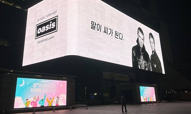 20일(한국시간) 오아시스는 공식 엑스(옛 트위터)를 통해 "11월 22일 금요일"이라는 글과 함께 한국과 일본 국기 이모티콘을 업로드해 이목을 모았다. 이와 함께 서울 삼성동 코엑스 전광판으로 보이는 사진 속에 '말이 씨가 된다'라는 문구가 담겨 기대감을 더하고 있다.