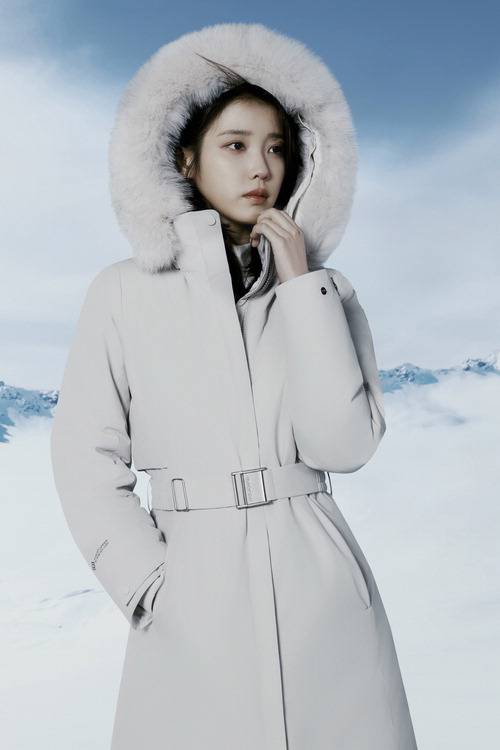 대표 제품인 '여성 파니 롱 다운자켓'은 얇은 두께감의 소재로 가벼운 착용감을 주면서 동시에 고급 침구류와 침낭에서 우모를 리사이클한 네오볼 다운을 보온 충전재로 사용해 환경적인 의미까지 더했다. 탈부착이 가능한 벨트와 옆트임의 길이를 조절할 수 있는 스냅 버튼 등으로 착용자의 편의와 스타일에 따라 다양한 실루엣을 연출할 수 있다. 화보에서 아이유는 허리선을 강조해 착용했다.
