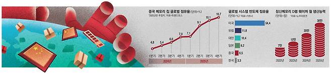 방대한 중국 내수시장과 막대한 정부 지원금을 등에 업고 한국·대만·미국이 장악 중인 반도체 시장에 균열을 내고 있다.