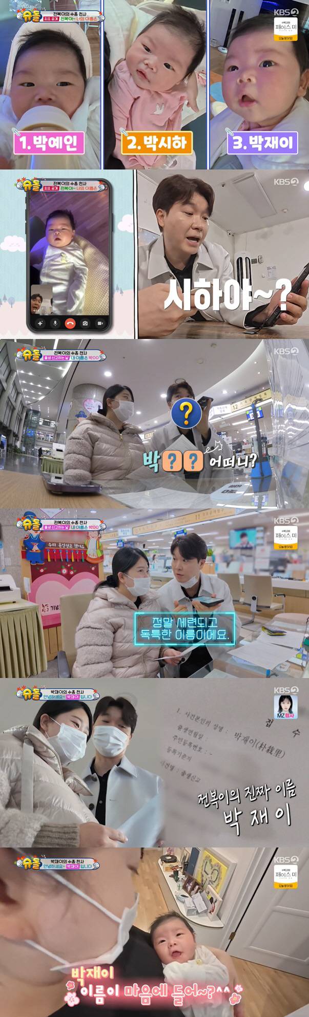 박수홍 부부가 고민 끝에 결정한 딸의 이름은 '박재이'였다. 두 사람은 딸에게 '재이야'를 연신 외치며 "사랑한다 우리 재이"라고 말했다. 이에 전복이는 '재이'라는 이름을 듣더니 자신의 이름인 걸 아는 것처럼 배시시 미소로 화답해 훈훈함을 자아냈다.