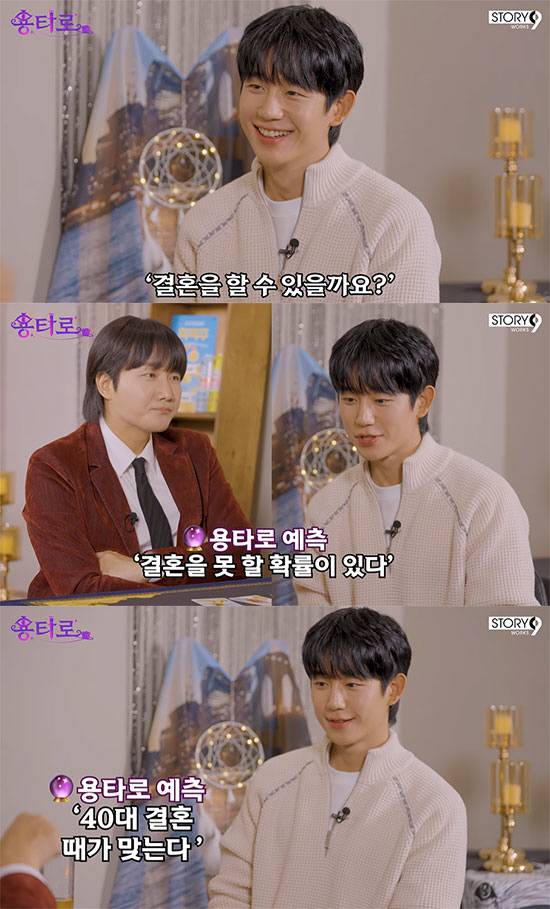 타로 카드를 뽑는 정해인에 이용진은 "팬들도 정해인이 80살이 됐는데 결혼 안 하고 있으면 좋아할까?"라고 너스레를 떨었고, 정해인도 "그러니까요"라고 맞장구를 치며 "40대에는 할 수 있을까 그런 마음은 있는데"라며 속마음을 내비쳤다.