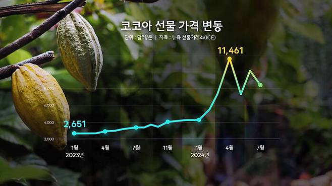 설상가상으로 올해 초엔 태평양의 해수면 온도 상승으로 적도 일대에 이상 고온과 폭우가 발생하는 '엘니뇨(El Nino)' 현상이 서아프리카를 강타했습니다. 한창 열매가 성숙해야 할 시기에 비가 쏟아지면서 습한 환경에서 잘 자라는 곰팡이 포자가 급속도로 번지면서 두 나라의 코코아 생산량은 최대 절반 가까이 곤두박질쳤습니다.