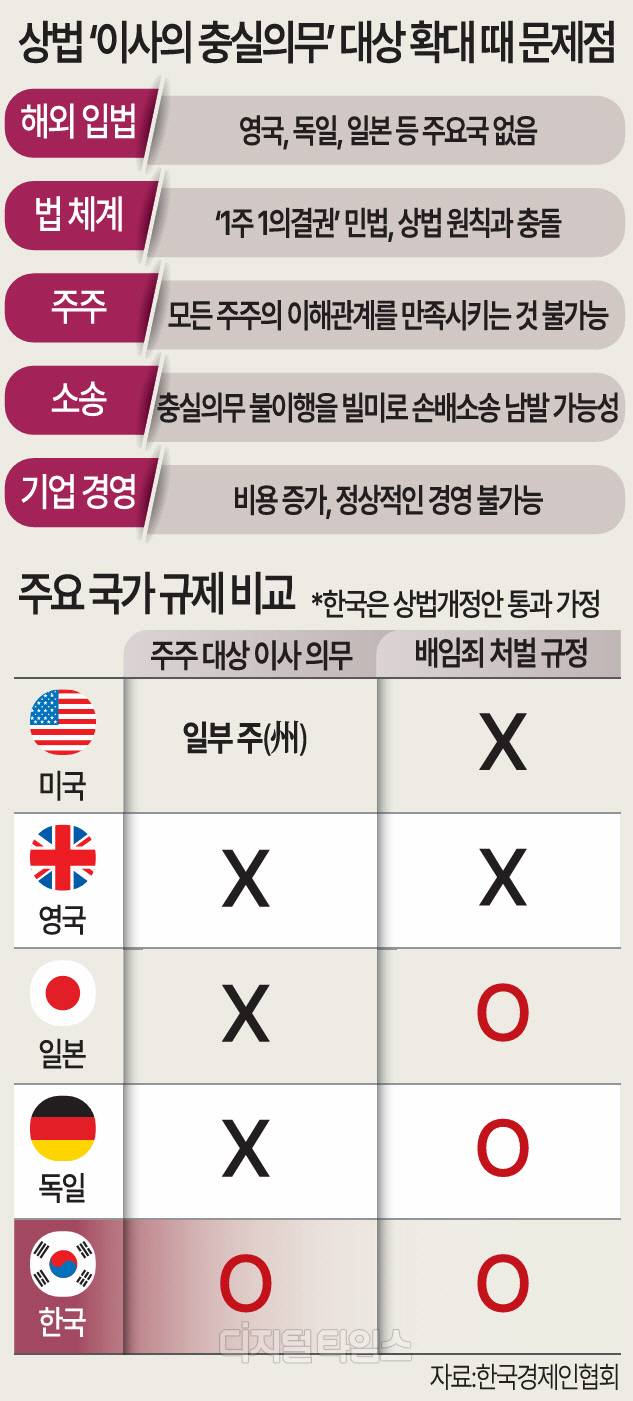 기업의 경영 합리화를 위한 사업 재편 과정에서 빚어질 수 있는 소수 주주 피해를 방지하기 위한 제도 정비는 필요하지만, 현재 추진되는 상법 개정은 이른바 '해외 투기자본 먹튀'를 조장해 기업경영 전반에 상당한 차질을 야기할 수 있다는 주장이다.