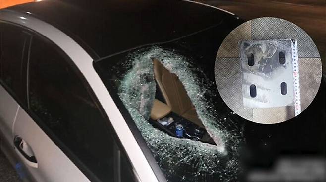 옆자리 아내 "악!"…날아든 쇳덩이에 앞유리 '와장창'