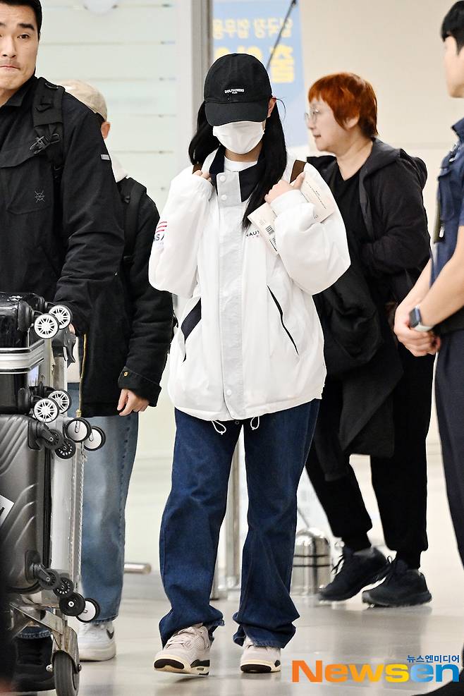 뉴진스(NewJeans) 멤버 하니(HANNI)가 11월 21일 오후 인천 중구 운서동 인천국제공항 제 2여객터미널을 통해 해외 일정을 마치고 일본에서 입국하고 있다.