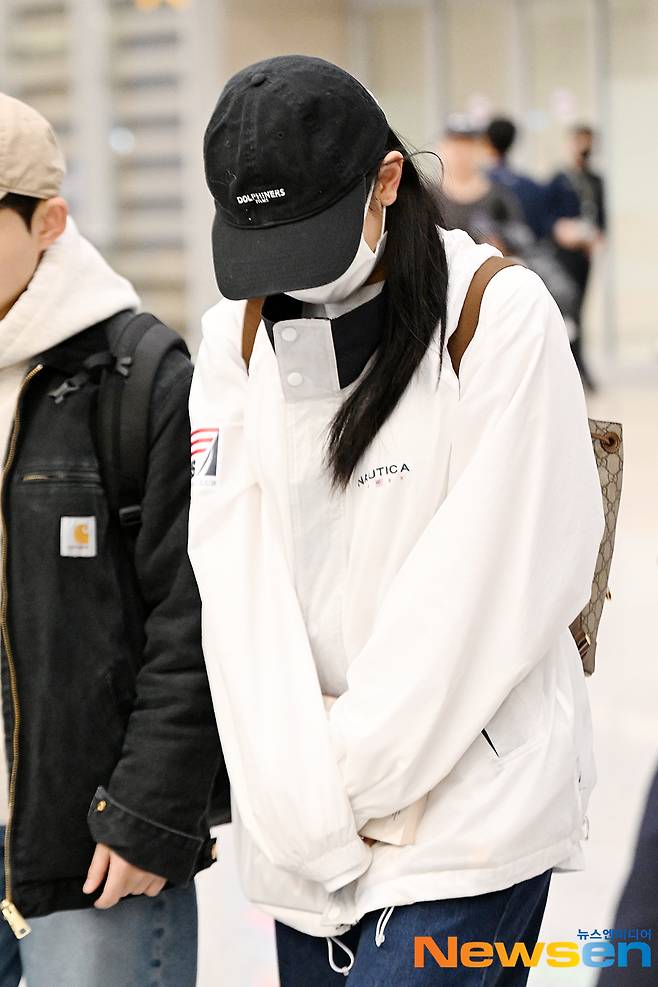 뉴진스(NewJeans) 멤버 하니(HANNI)가 11월 21일 오후 인천 중구 운서동 인천국제공항 제 2여객터미널을 통해 해외 일정을 마치고 일본에서 입국하고 있다.
