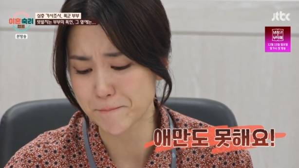 이후 공개된 일상에서 아내는 육아와 살림을 독박으로 도맡고 있었다. 이미 한 차례 이혼을 유예한 적 있다는 두 사람은 가사노동 문제로 다툼을 했고, 그 과정에서 남편은 욕설을 뱉었다. 아내는 "중간에 감정을 알려주지 않고 급발진하는거라 무방비 상태에서 폭언 들어야한다. 그순간 욱하면 바로 해소해야하는 성향이다"라고 말했고, 남편은 "푸념 늘어놓어며 하는걸 폭언이라고 하더라"라고 해명했다.