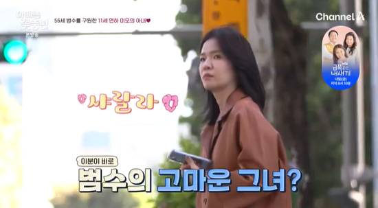 알고보니 그는 방송 최초로 공개되는 11살 연하의 아내. '전지현 닮은 꼴'이라는 수식어가 붙을만큼 미인이라는 아내의 정체에 관심이 집중되는 가운데, 김범수는 멀리서부터 아내를 향해 "오 예쁜데"라며 연신 감탄을 뱉으며 '팔불출' 면모를 보였다.