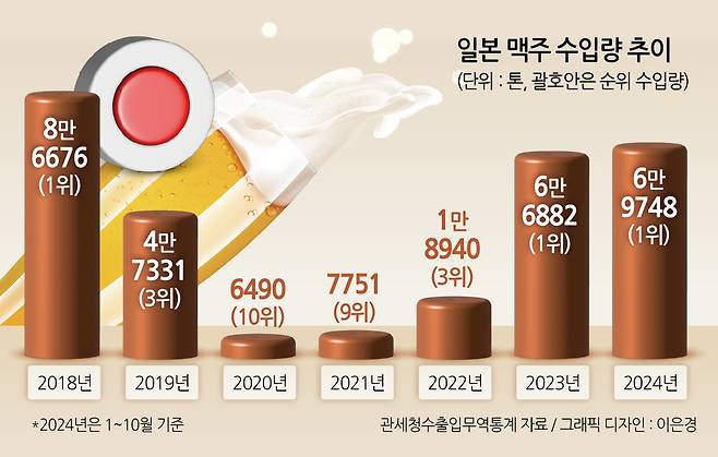 관세청 수출입무역통계에 따르면 불매운동이 시작된 2019년 일본 맥주 수입량은 4만7331톤으로 집계됐다.