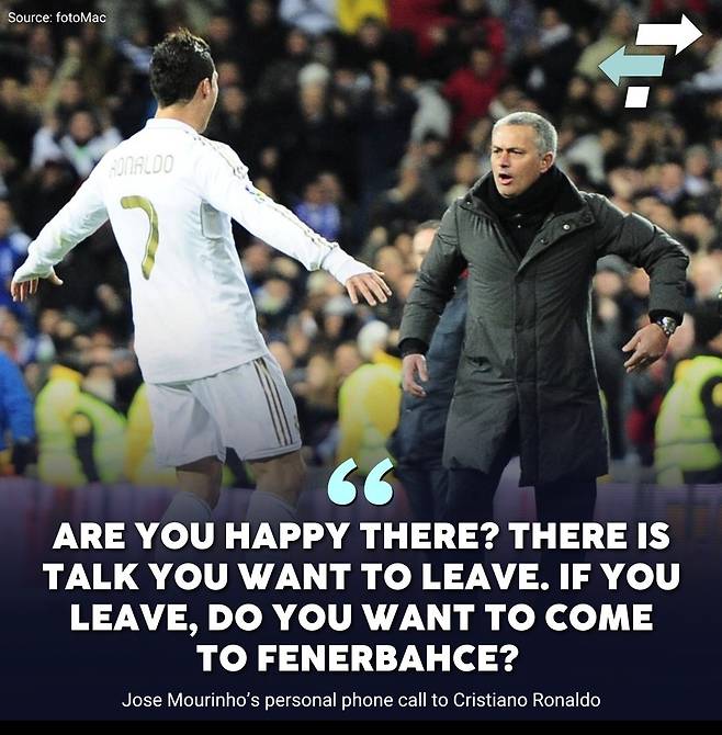 무리뉴 감독은 호날두와의 통화에서 "만약 거기에서의 삶이 행복하지 않다면, 사우디아라비아를 떠나고자 한다면 페네르바체로 올 생각은 없느냐"라고 직접 말했다.