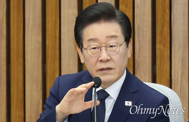 | ▲ 이재명 더불어민주당 대표가 22일 오전 서울 여의도 국회에서 열린 확대간부회의에 참석해 상법 개정 추진에 재계의 반발에 대해 “상법 개정과 관련된 양측의 찬반 공개 토론을 제안한다”라며 “제가 직접 토론에 참여해보고 쌍방 입장을 취합한 뒤 당의 입장을 정하겠다”고 말했다. |