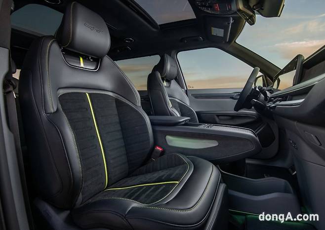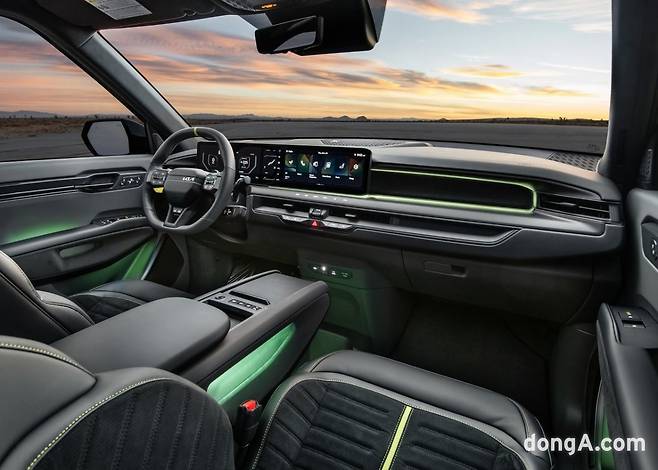 외관의 경우 고성능 감성을 강조한 전용 디자인이 적용됐다. 전용 범퍼와 휠, 네온컬러 브레이크 캘리퍼, 블랙 컬러 포인트 등이 특징이다. 다만 이번에 공개한 EV9 GT를 살펴보면 기본형과는 꽤 다르지만 EV9 GT라인과의 차별화는 아쉽다. 휠과 캘리퍼 외에 크게 다른 부분을 찾기 어렵다. 그릴부 라이트 조명은 GT 전용 패턴이 적용됐다고 한다.