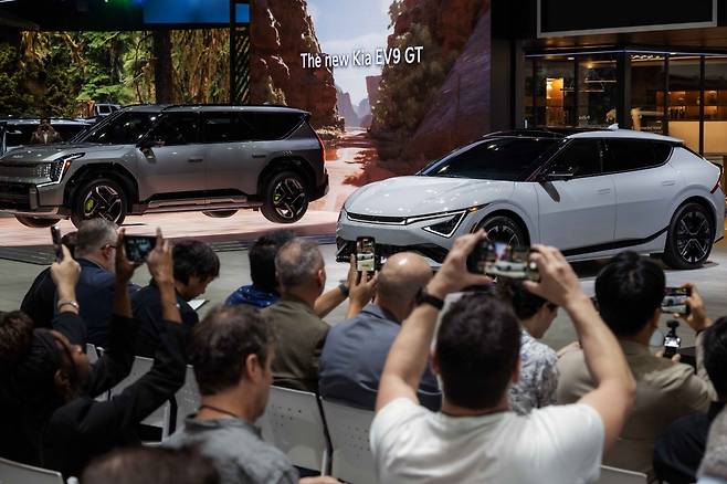 기아 美 2024 LA오토쇼 참가 현대차 아이오닉9, LA오토쇼서 세계 최초 공개 기아, 아직 개발 중인 ‘EV9 GT’ 투입 가상 변속·사운드 적용… 내년 국내 출시 최고출력 508마력 목표… 시속 100km까지 4.3초 ‘EV6 GT 상품성 개선 모델’ 첫선… 최고출력 609마력 기아 K4, 북미 올해의 차 승용부문 최종 후보… 캠리·시빅과 경쟁