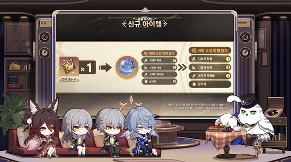 유물 보조 속성을 지정 합성할 수 있는 소원 레진이 추가된다. 자가 변용성 레진을 함께 소모하면 메인 속성과 보조 속성을 모두 지정할 수 있다. 변수 주사위는 보조 속성 강화 횟수를 재분배할 수 있는 아이템으로, 소원 레진과 함께 업데이트된다.